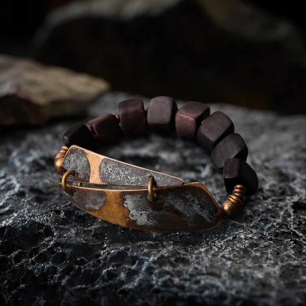 "Grandfather's Gift" | Heritage Ebony Wood & Antiqued Brass Protection Bracelet