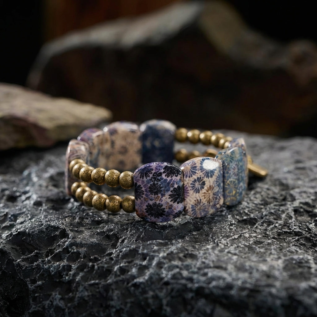 Serene Lucky | "Timeless Echo" Handcrafted Fossil Coral & Antiqued Brass Multi-Wrap Talisman